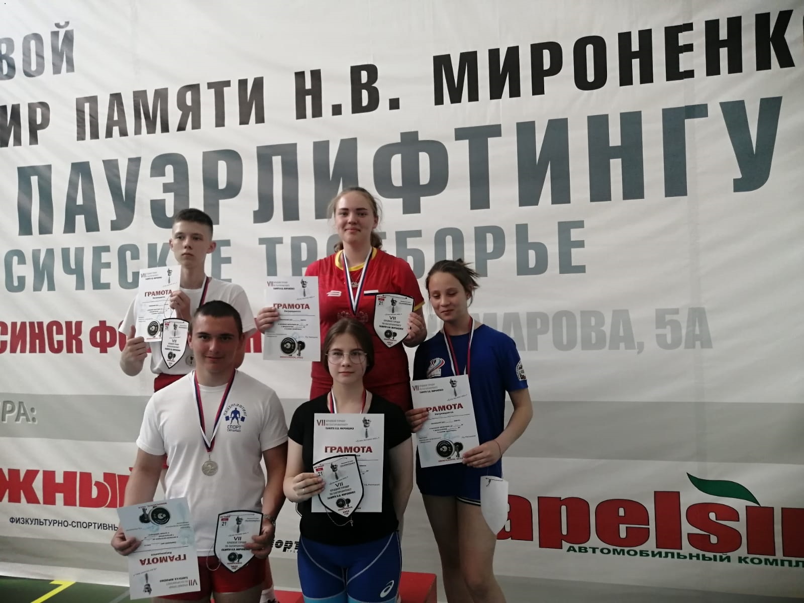 21 мая в г.Минусинске состоялся краевой турнир памяти Николая Васильевича Мироненко по пауэрлифтингу, классическое троеборье. 47 участников из 7 городов края приняли участие в соревнованиях. Это мероприятие проводится при поддержке Федерации пауэрлифтинга Красноярского края, Администрации г. Минусинска, Федерации пауэрлифтинга Минусинска, спортивных клубов «СпортМастер» и ФСЦ «Южный». На открытии соревнований с приветственным словом выступили глава города Минусинска - Первухин Андрей Олегович и председатель Минусинского городского Совета депутатов - Чумаченко Лариса Ивановна. Технические результаты соревнований:
