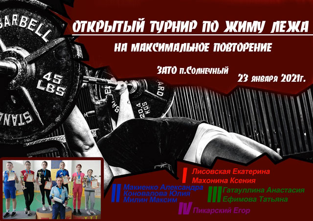 23 января 2021 года в ЗАТО п. Солнечный прошел открытый турнир по жиму лежа на максимальное повторение.