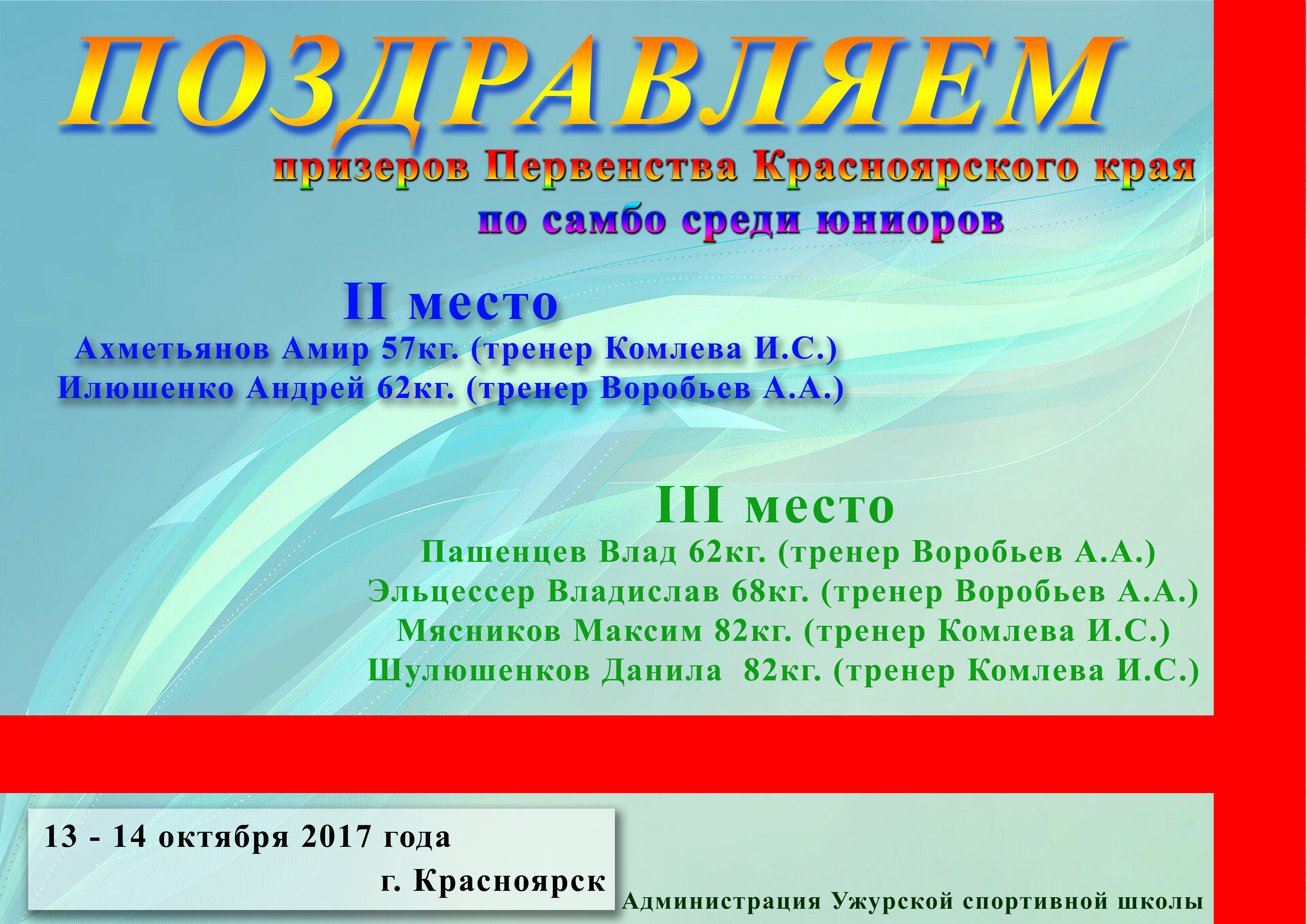 • I Кубок Руководителя управления образования по самбо .