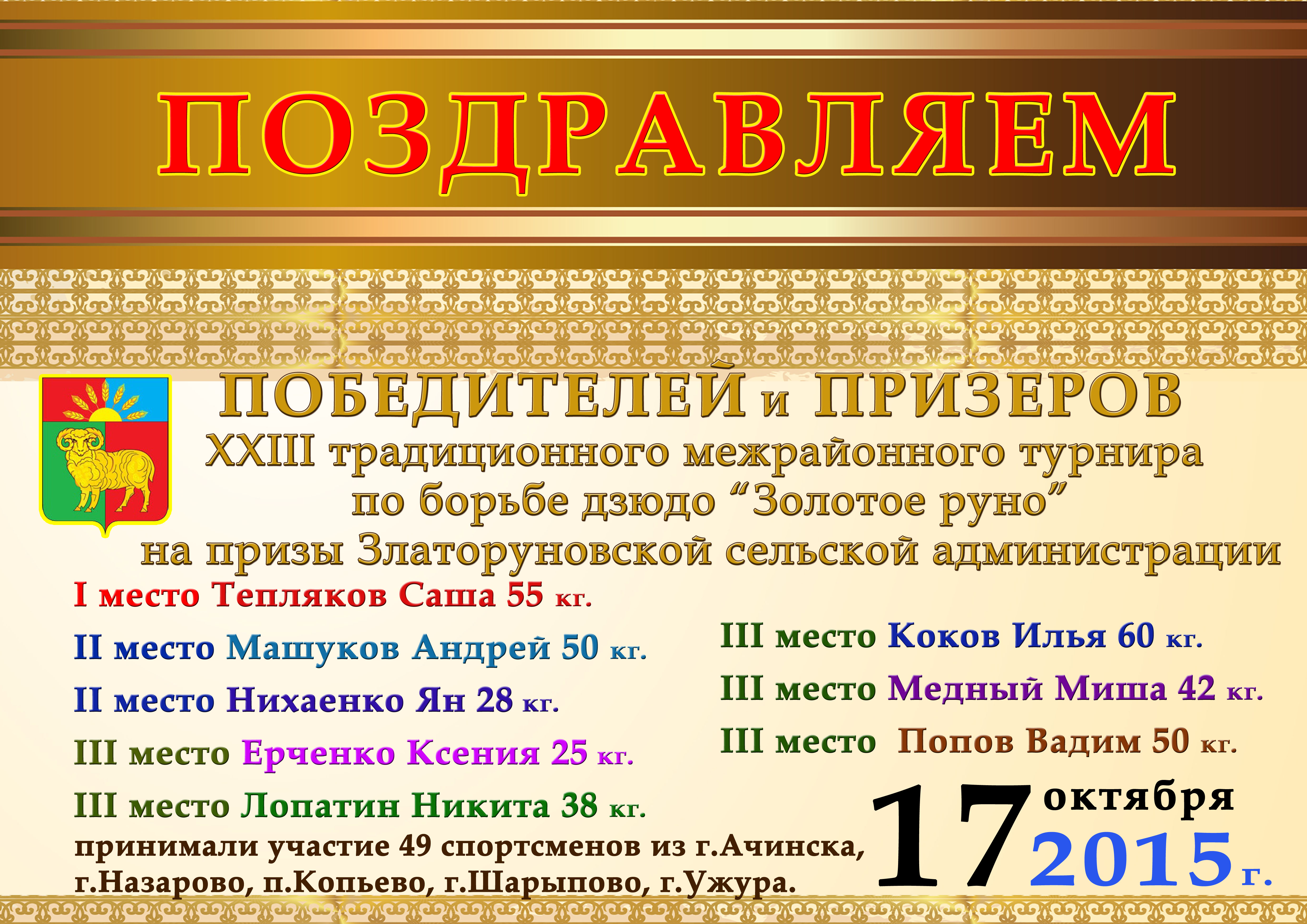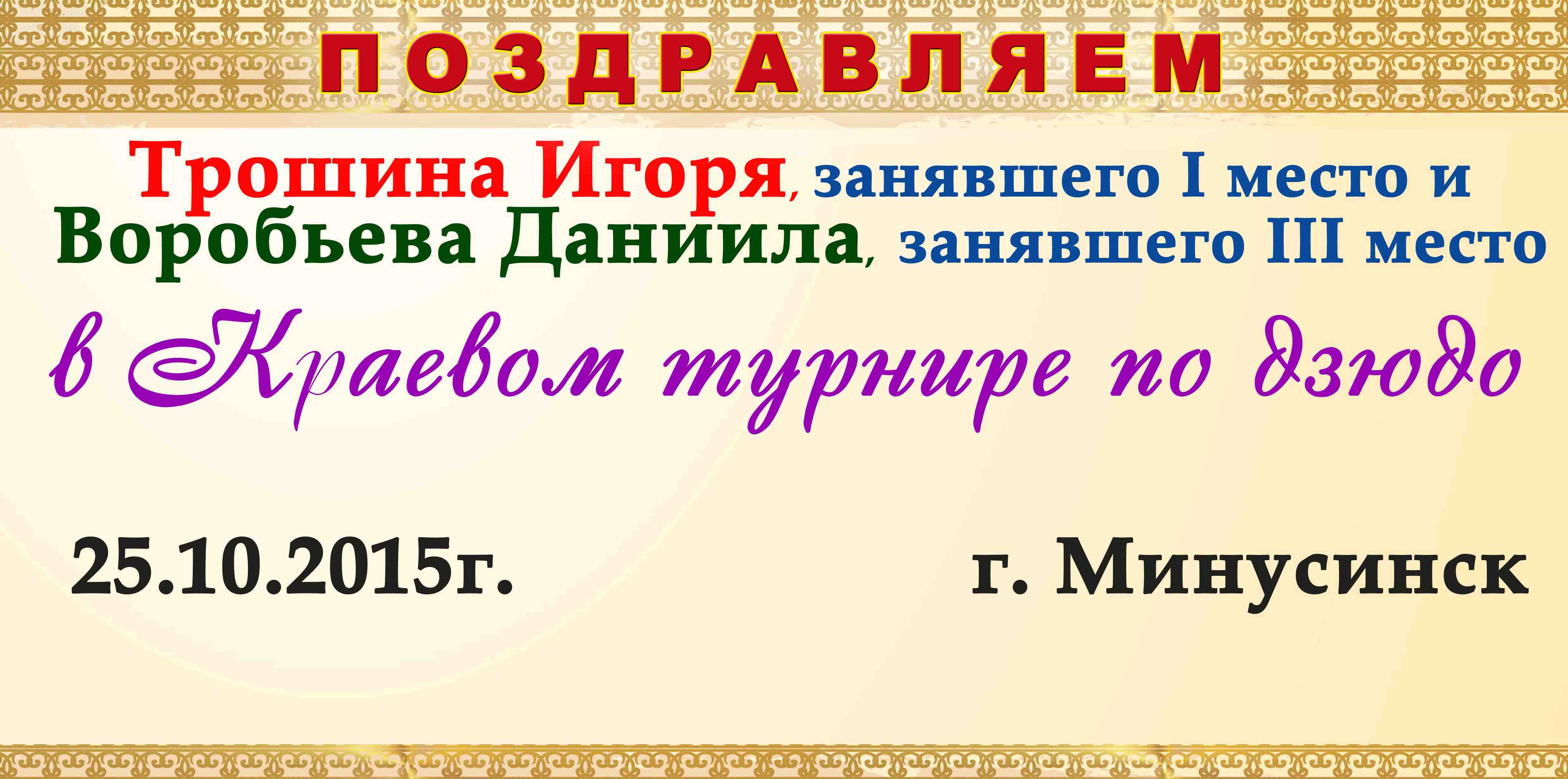 Победитель краевого турнира по дзюдо в г.Минусинске